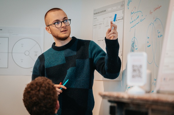 Tout au long du processus, les équipes sont accompagnées par des coachs, entrepreneurs et facilitateurs. Leur rôle : aider à structurer les idées, dépasser les blocages et maintenir une dynamique collective.